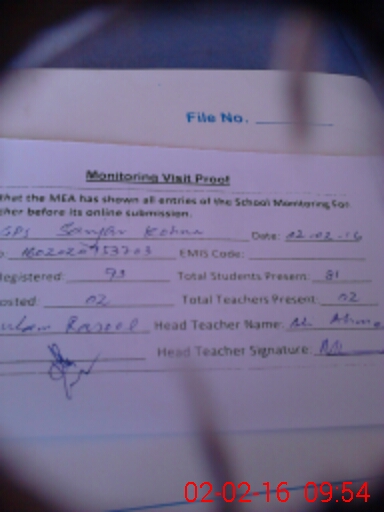 | Certified that this School was Inspected by the Undersigned MEA/DMO Today and the Information Stated Above is as Per Record. | |||||