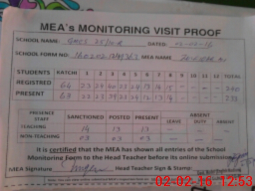 | Certified that this School was Inspected by the Undersigned MEA/DMO Today and the Information Stated Above is as Per Record. | |||||