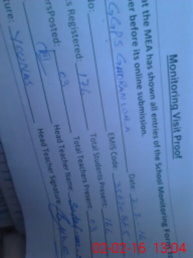 | Attendance Register | Head Teacher | MEA with School | Visit Proof |