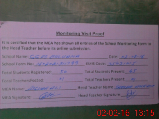 | Certified that this School was Inspected by the Undersigned MEA/DMO Today and the Information Stated Above is as Per Record. | |||||