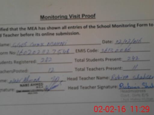 | Certified that this School was Inspected by the Undersigned MEA/DMO Today and the Information Stated Above is as Per Record. | |||||