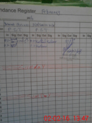 | CNIC | Full Name | Designation | R/C | Absence During Last Calender Month |