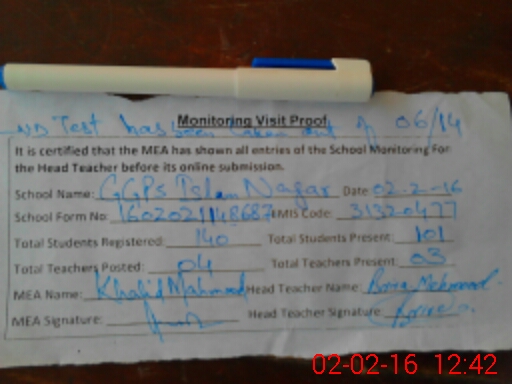 | Attendance Register | Head Teacher | MEA with School | Visit Proof |