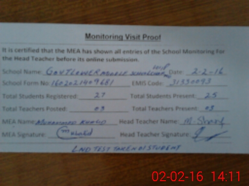 | Certified that this School was Inspected by the Undersigned MEA/DMO Today and the Information Stated Above is as Per Record. | |||||