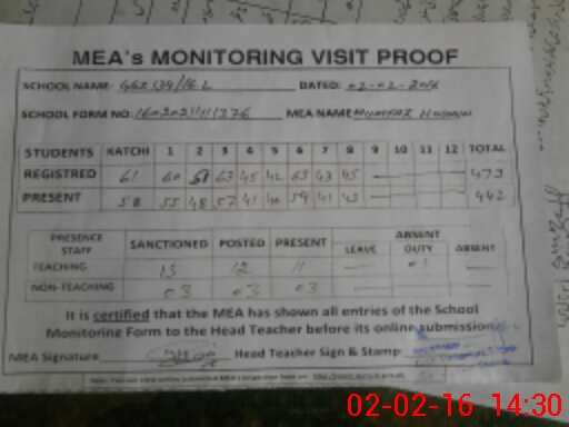 | Certified that this School was Inspected by the Undersigned MEA/DMO Today and the Information Stated Above is as Per Record. | |||||