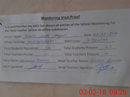 | EMIS Code: 31320599 | Name of School: GGPS GOTH HAYAT | |||