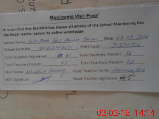 | EMIS Code: 31320226 | Name of School: GPS BASTI FAIZ AHMAD BOHAR | |||