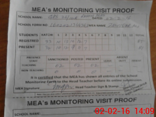 | Attendance Register | Head Teacher | MEA with School | Visit Proof |
