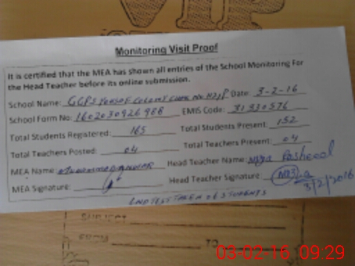 | Certified that this School was Inspected by the Undersigned MEA/DMO Today and the Information Stated Above is as Per Record. | |||||