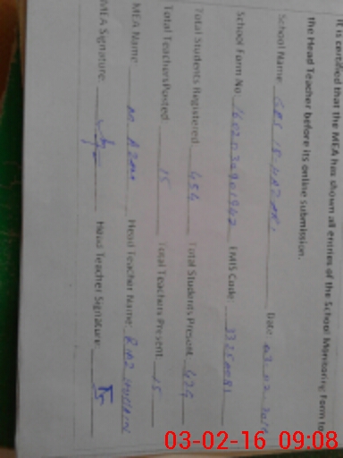 | Certified that this School was Inspected by the Undersigned MEA/DMO Today and the Information Stated Above is as Per Record. | |||||