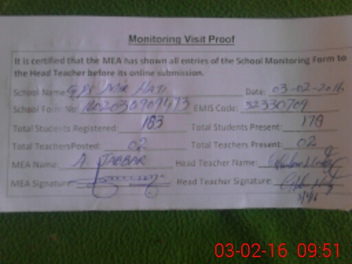 | EMIS Code: 32330709 | Name of School: GPS MIR HAJI | |||