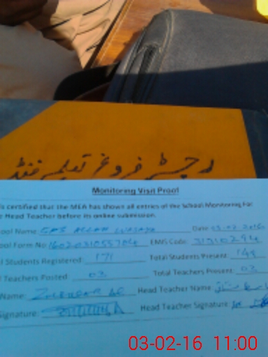 | EMIS Code: 31310294 | Name of School: GPS ALLAH WASAYA (After Noon) | |||