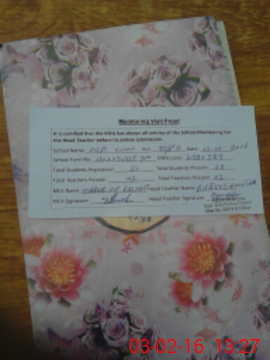 | Attendance Register | Head Teacher | MEA with School | Visit Proof |