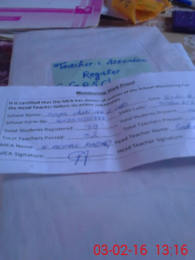 | Attendance Register | Head Teacher | MEA with School | Visit Proof |