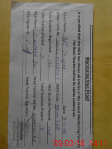 | Attendance Register | Head Teacher | MEA with School | Visit Proof |