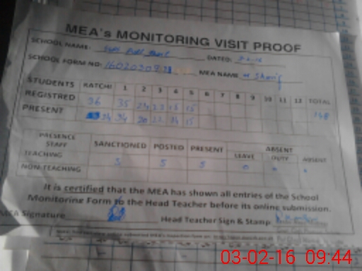 | Certified that this School was Inspected by the Undersigned MEA/DMO Today and the Information Stated Above is as Per Record. | |||||