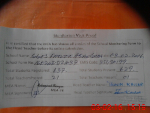 | Certified that this School was Inspected by the Undersigned MEA/DMO Today and the Information Stated Above is as Per Record. | |||||