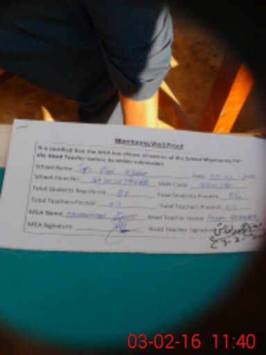 | Attendance Register | Head Teacher | MEA with School | Visit Proof |