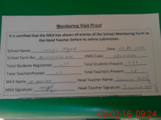| Certified that this School was Inspected by the Undersigned MEA/DMO Today and the Information Stated Above is as Per Record. | |||||