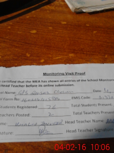 | Certified that this School was Inspected by the Undersigned MEA/DMO Today and the Information Stated Above is as Per Record. | |||||
