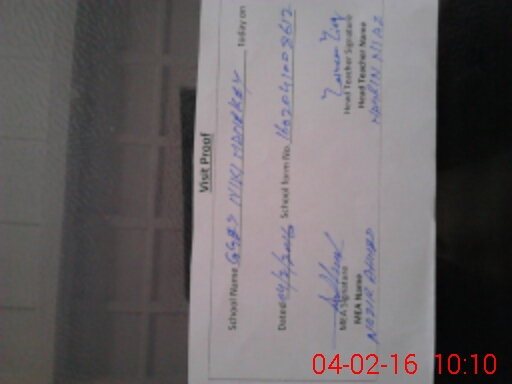 | School Visited by School Health & Nutrition Supervisor (No. of Visits) | 1 | Name1: | SHAHEER AHMAD | Name2: | |