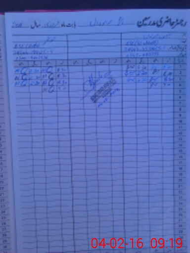 | CNIC | Full Name | Designation | R/C | Absence During Last Calender Month |