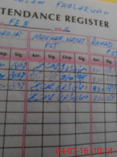 | CNIC | Full Name | Designation | R/C | Absence During Last Calender Month |