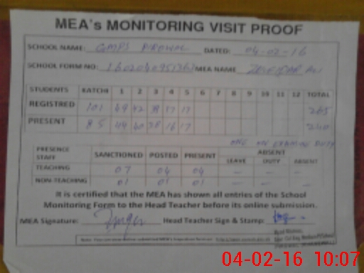 | Attendance Register | Head Teacher | MEA with School | Visit Proof |