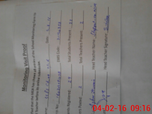 | Attendance Register | Head Teacher | MEA with School | Visit Proof |