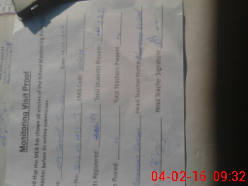 | Attendance Register | Head Teacher | MEA with School | Visit Proof |