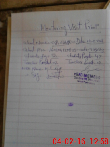 | Attendance Register | Head Teacher | MEA with School | Visit Proof |