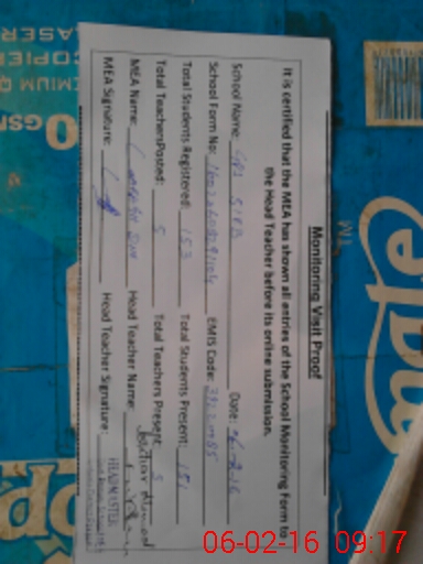 | Certified that this School was Inspected by the Undersigned MEA/DMO Today and the Information Stated Above is as Per Record. | |||||