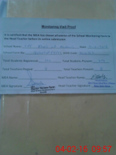 | Attendance Register | Head Teacher | MEA with School | Visit Proof |