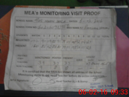 | Certified that this School was Inspected by the Undersigned MEA/DMO Today and the Information Stated Above is as Per Record. | |||||