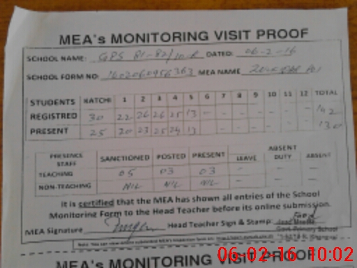 | Certified that this School was Inspected by the Undersigned MEA/DMO Today and the Information Stated Above is as Per Record. | |||||