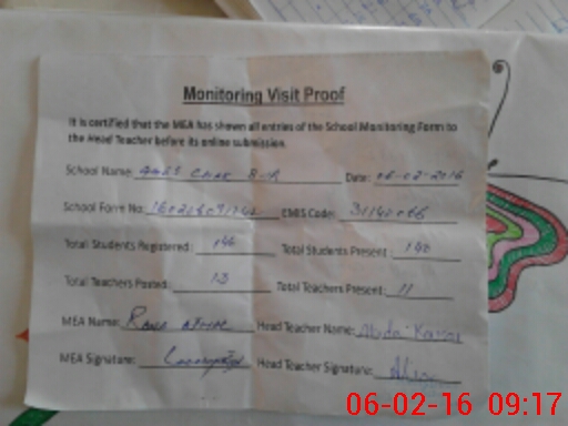 | Attendance Register | Head Teacher | MEA with School | Visit Proof |