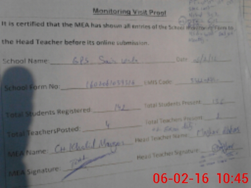 | EMIS Code: 33220294 | Name of School: GPS SAIR WALA | |||