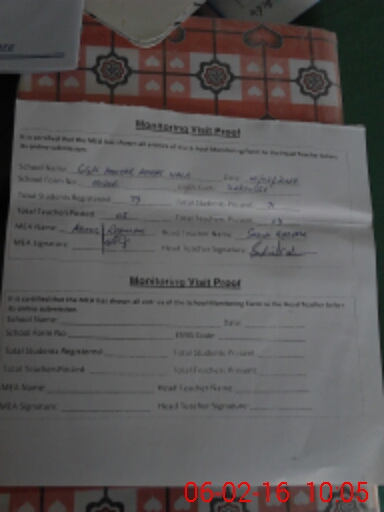 | Attendance Register | Head Teacher | MEA with School | Visit Proof |