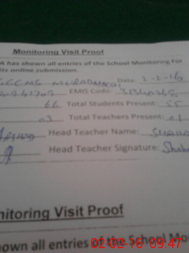 | Attendance Register | Head Teacher | MEA with School | Visit Proof |