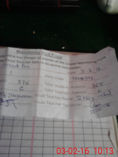 | Attendance Register | Head Teacher | MEA with School | Visit Proof |