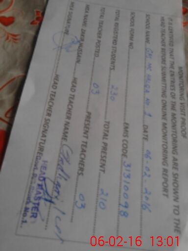 | EMIS Code: 31310098 | Name of School: GPS MC HALQA NO 1 | |||
