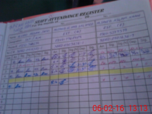 | CNIC | Full Name | Designation | R/C | Absence During Last Calender Month |