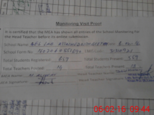 | Certified that this School was Inspected by the Undersigned MEA/DMO Today and the Information Stated Above is as Per Record. | |||||