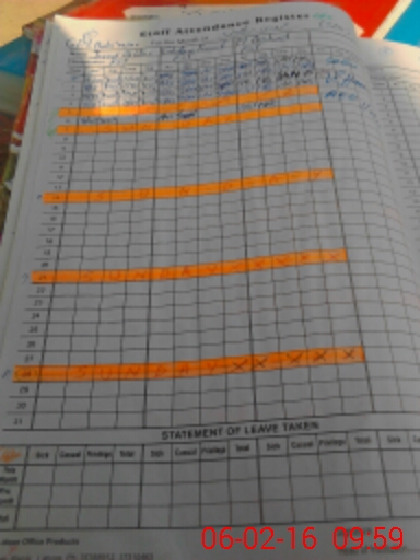 | CNIC | Full Name | Designation | R/C | Absence During Last Calender Month |