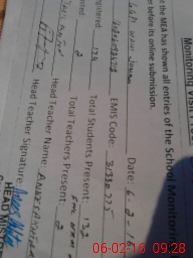 | Attendance Register | Head Teacher | MEA with School | Visit Proof |