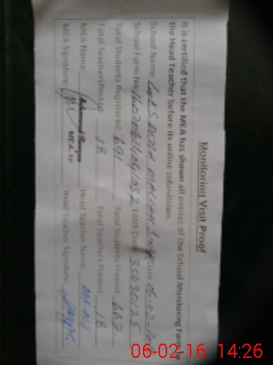| Certified that this School was Inspected by the Undersigned MEA/DMO Today and the Information Stated Above is as Per Record. | |||||
