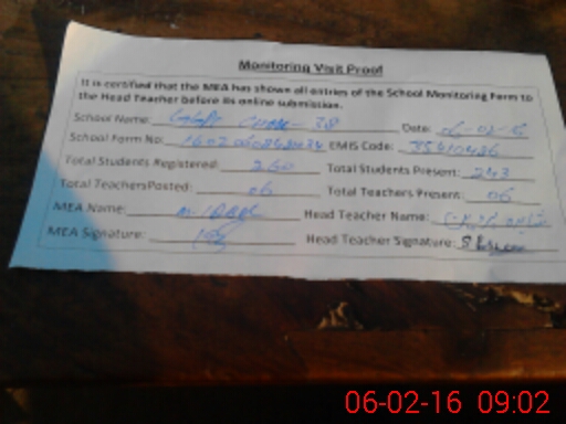 | Attendance Register | Head Teacher | MEA with School | Visit Proof |