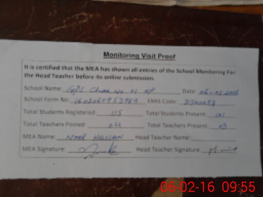 | EMIS Code: 31340258 | Name of School: GPS CHAK NO 1/NP | |||