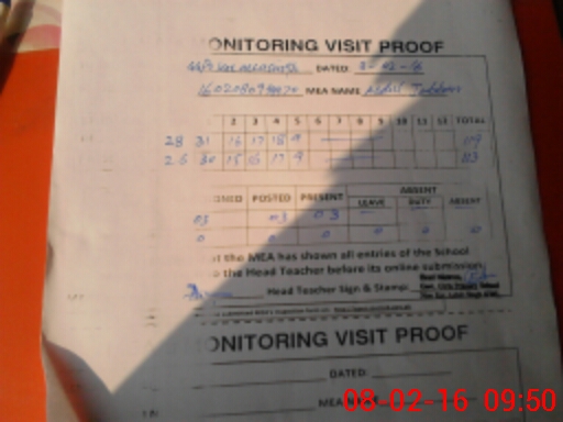| Attendance Register | Head Teacher | MEA with School | Visit Proof |