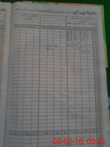 | CNIC | Full Name | Designation | R/C | Absence During Last Calender Month |